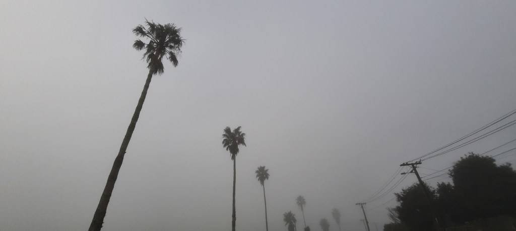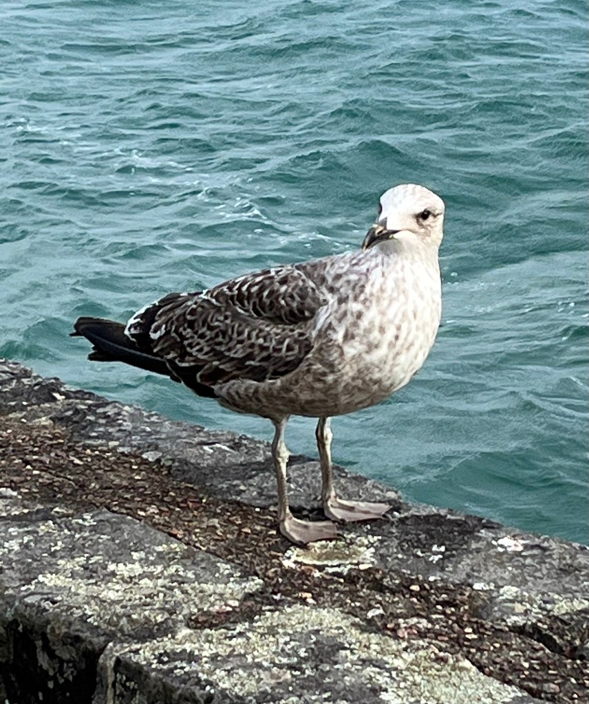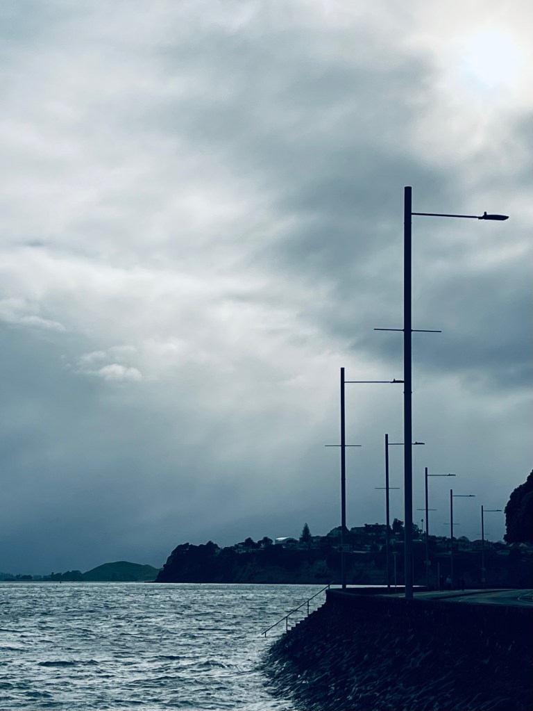 …sea wall, lampposts, waves,an overcast sky – at play for me as I walk by…