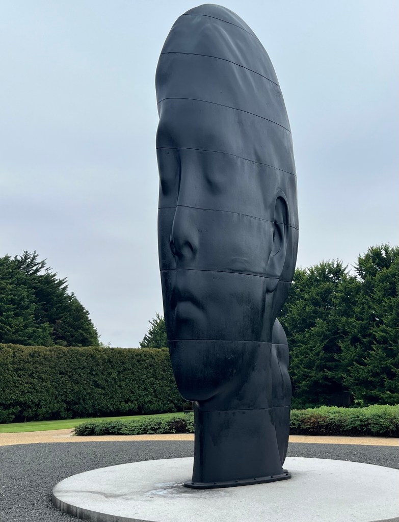“With its softly modelled features, Laura is typical of the artist’s series of monumental female heads with their eyes closed in reverie or meditation. Viewed from the front, the heads are exaggeratedly narrow…. However, when viewed from the side, Laura appears fully modelled and naturalistic. This interplay of perceptions is a feature of Plensa’s work generally”.