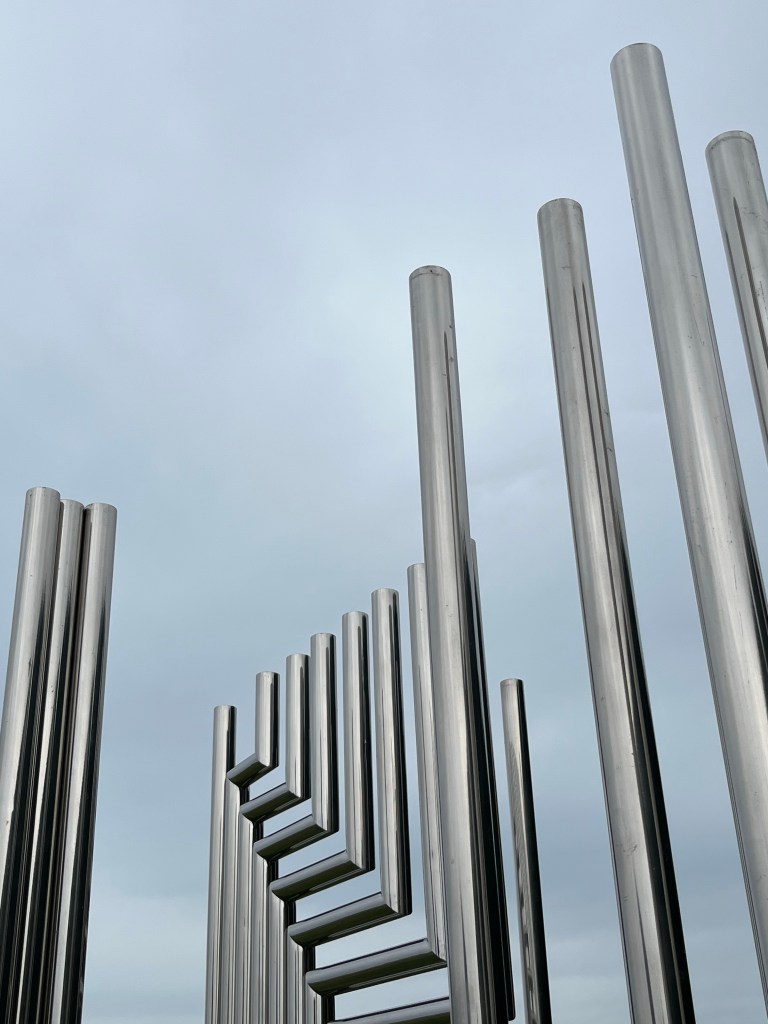 …so clever – cut from a single sheet of steel, this large 2D sculpture creates a 3D illusion…
