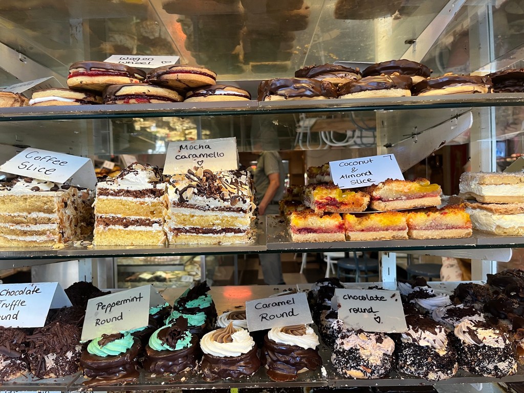 …sugary creations in the window of a st.kilda, Melbourne cake shop entice those with a sweet tooth. at least photos are calorie free!…