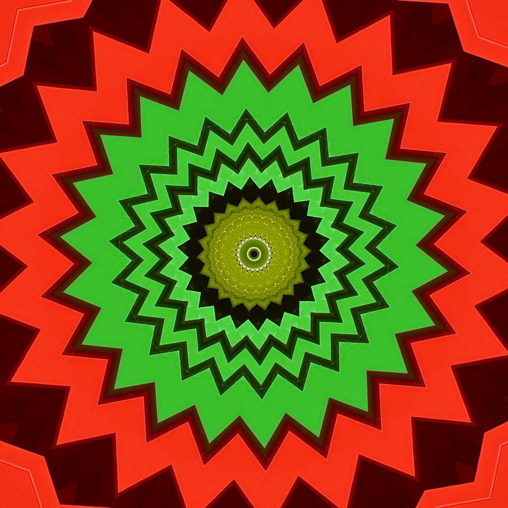 Red Telephone Box , my recent photo post, gets the kaleidoscopic treatment, radiating zigzags of bold colour. an emergency call?
