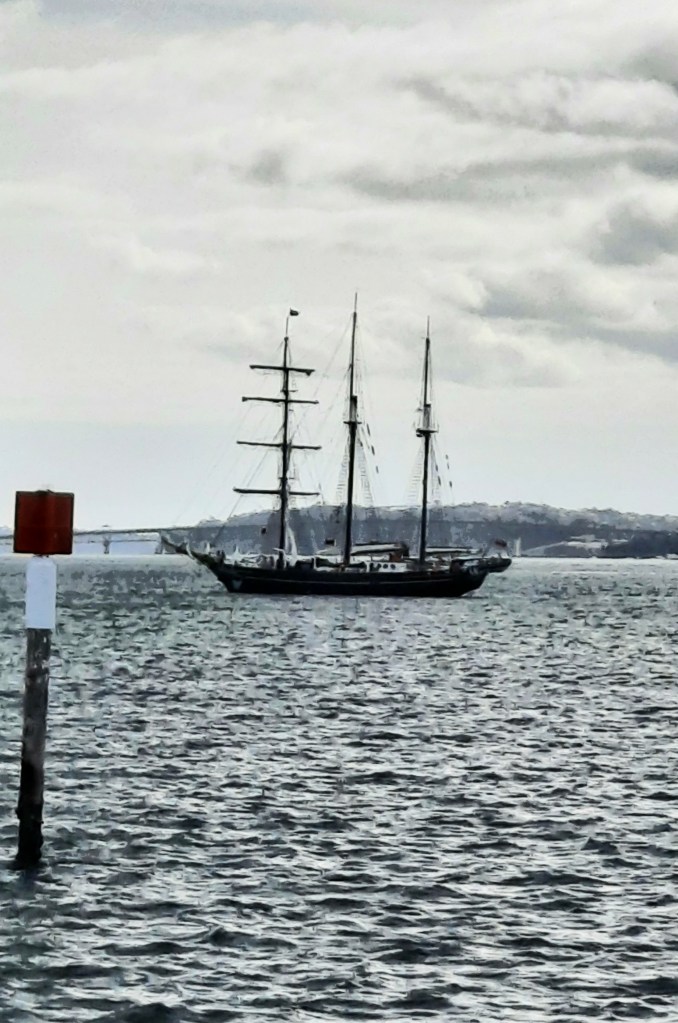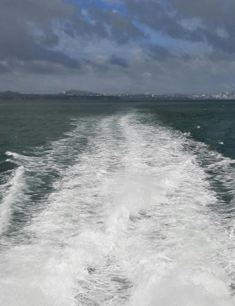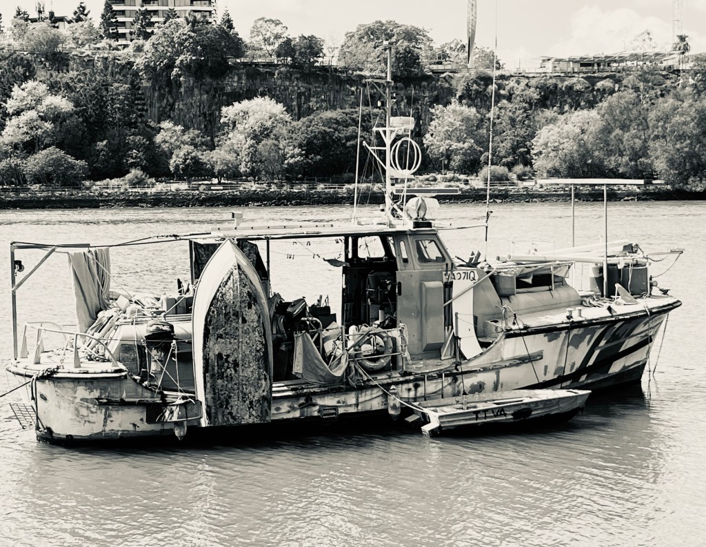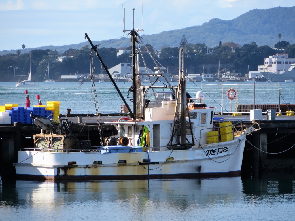 A fishing vessel moored in the calm sanctuary of Auckland’s downtown Viaduct Basin recently.
