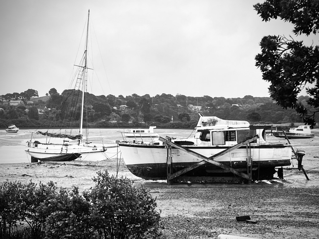 We walked in the wet; the boats sat on the hard, going exactly nowhere.