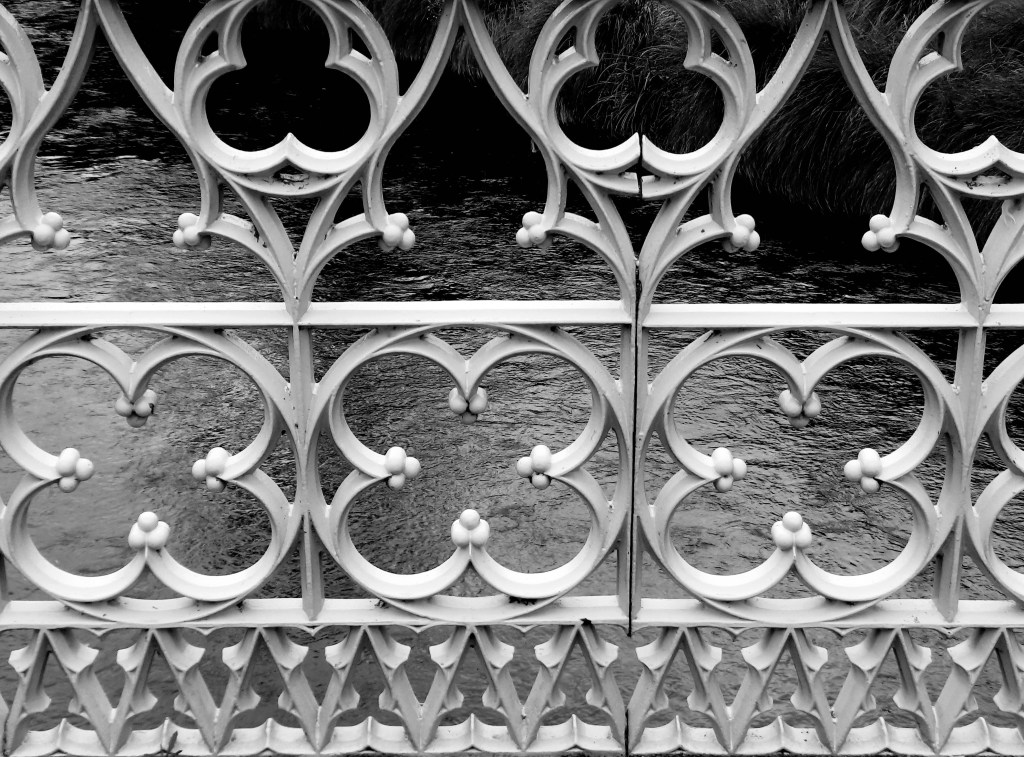Wrought iron railing detail on a bridge over Christchurch’s Avon River. Lovely!