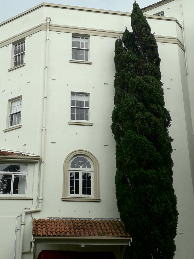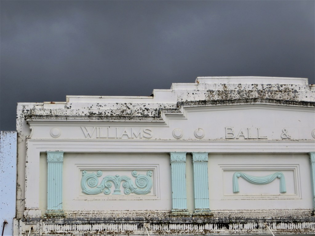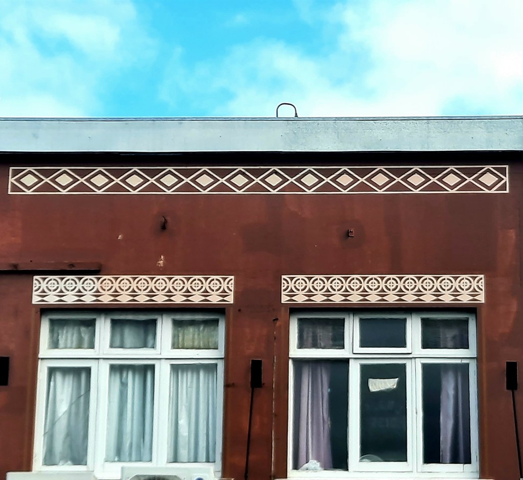 …diamond patterned tiles on an old building on Auckland’s Dominion Road…