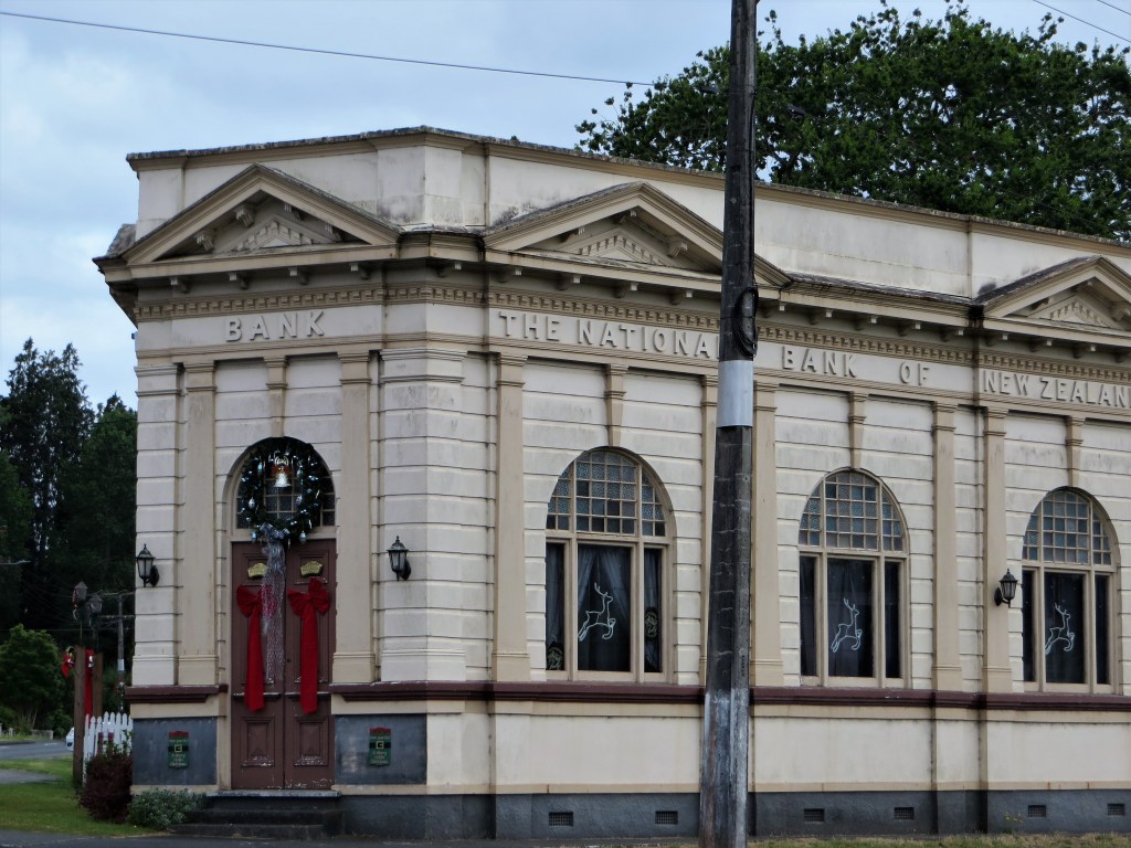 Christmas decorations on a disused bank in a Northland town I passed through earlier in the week.