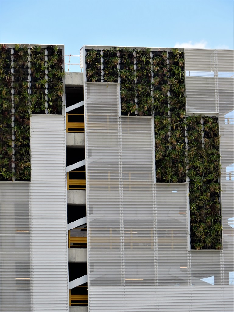 A downtown carpark incorporating planted inserts – a cool juxtaposition of man made and natural materials. Love it!