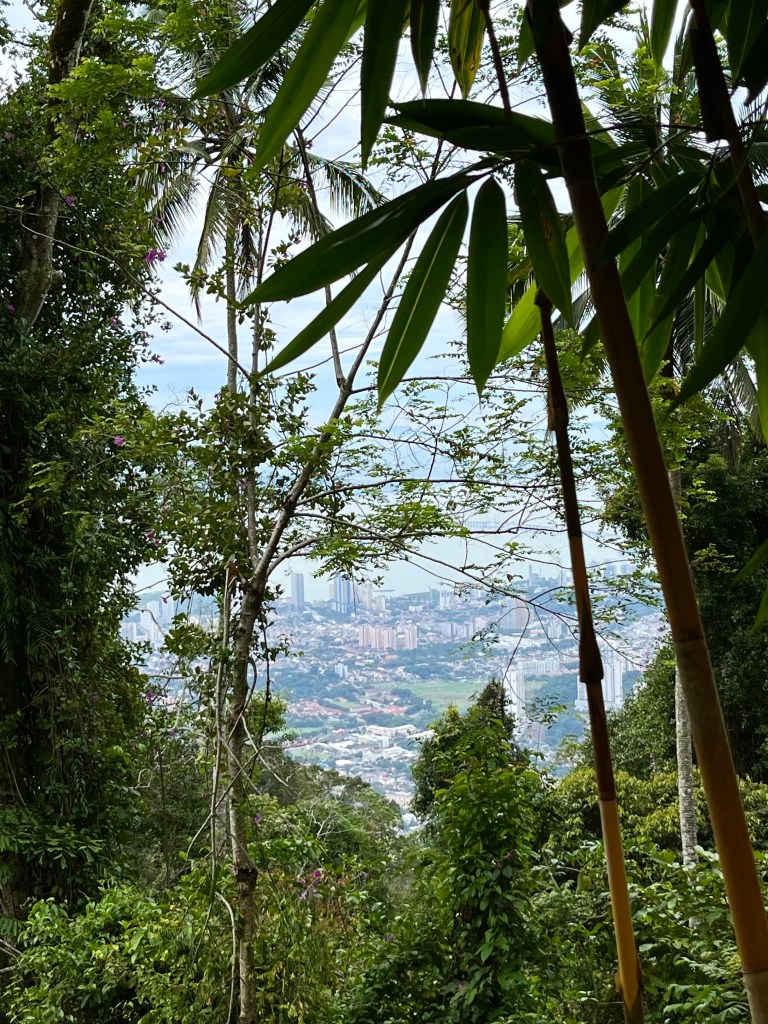 …down through the trees, a peek of the city, far below and noiselessly distant…