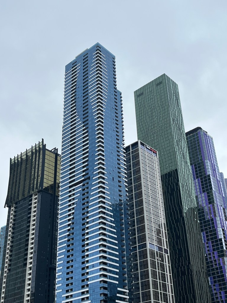 …the almost surreal view of skyscrapers from queen victoria market…