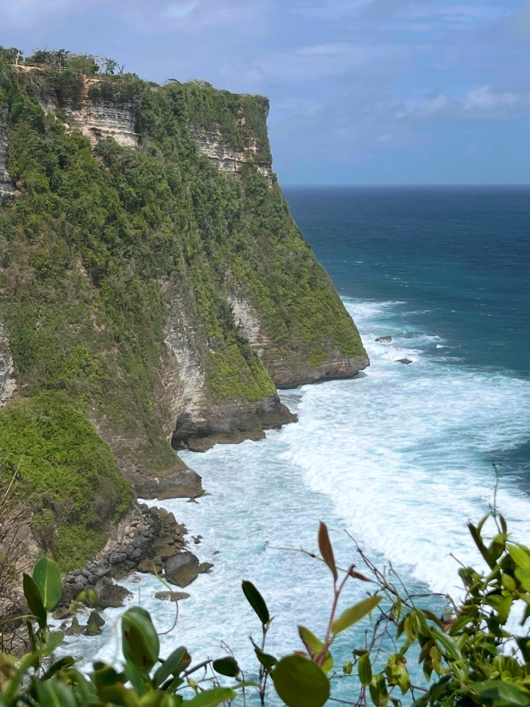 …the view to the cliffs and foaming surf to the west of the temple…